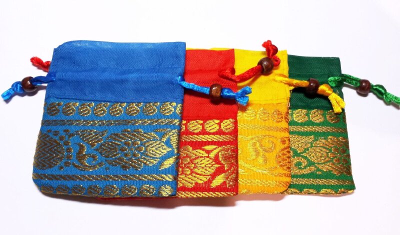 5er Set Sari Pendel-Beutelchen blau, rot, gelb, orange, pink