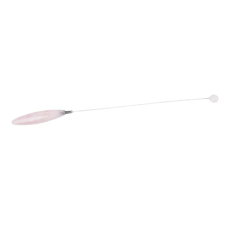 Griff (ca. 1,8 x 8cm) und Schwingkugel (ca. 1,2cm) des Edelsteintensors sind aus Rosenquarz;