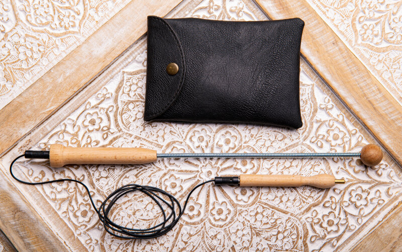 Der Griff aus Buchenholz liegt angenehm in der Hand, die Antenne reagiert sauber und fein auf Resonanzen.