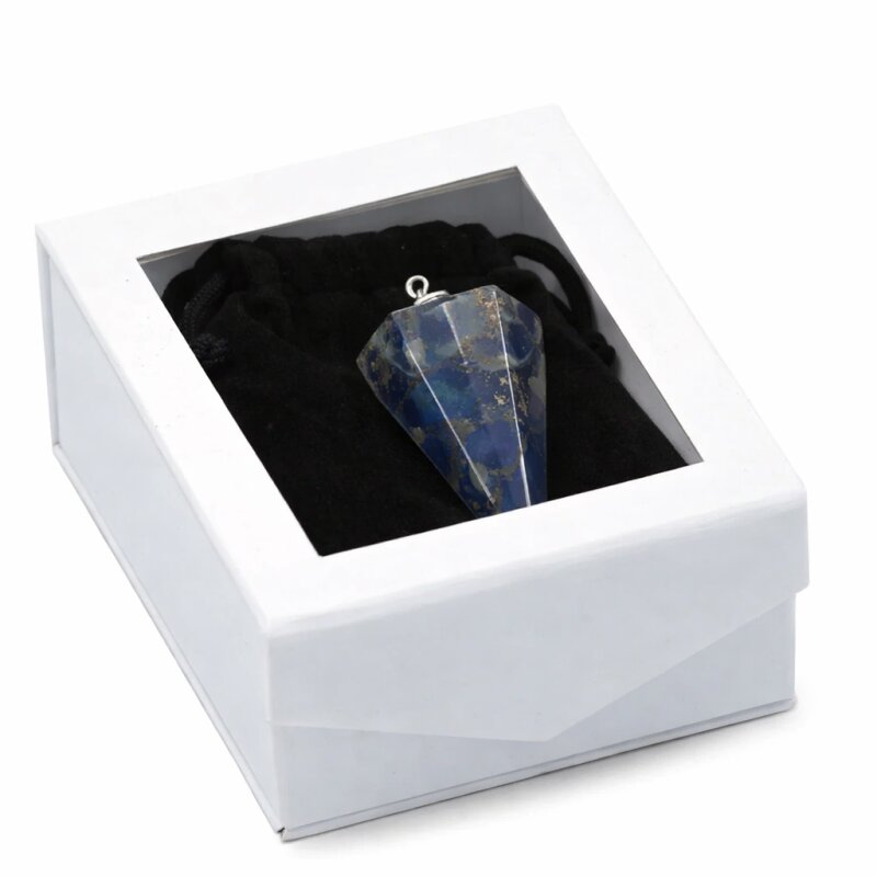 Die Lieferung erfolgt in einer dekorativen weißen Geschenkbox inkl. schwarzem Samtbeutelchen.
