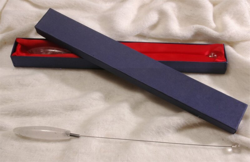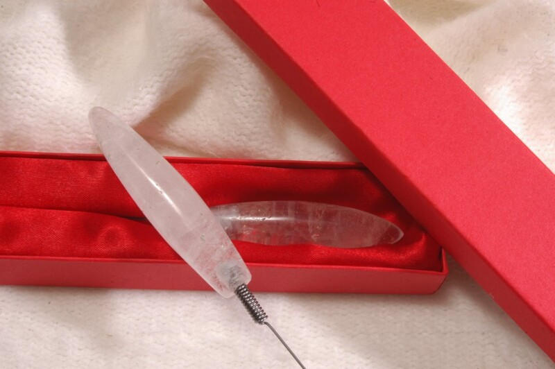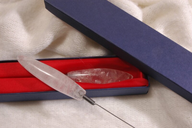 Griff und Kugel der Einhandrute sind aus echtem Bergkristall.