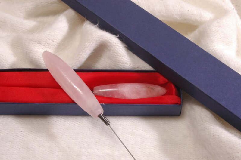 Einhandrute / Tensor mit Griff (ca. 7 cm) und Kugel aus Rosenquarz.