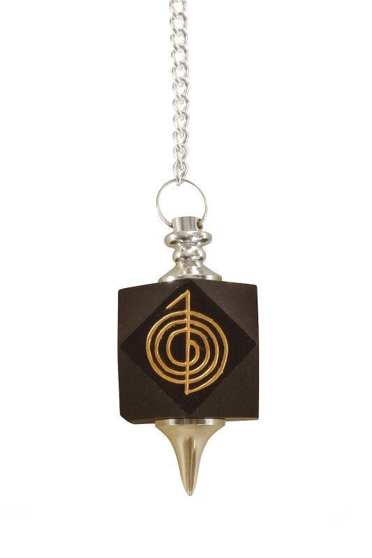 Schwarzer Achat Pendel mit Choku Rei Symbol
