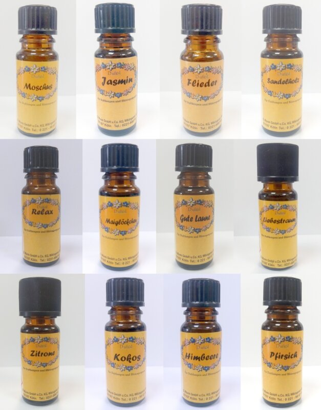 - Duftnoten: Relax, Maiglöckchen, Zitrone, Gute Laune, Kokos, Himbeere, Moschus, Jasmin, Flieder, Liebestraum, Sandelholz und Pfirsich.