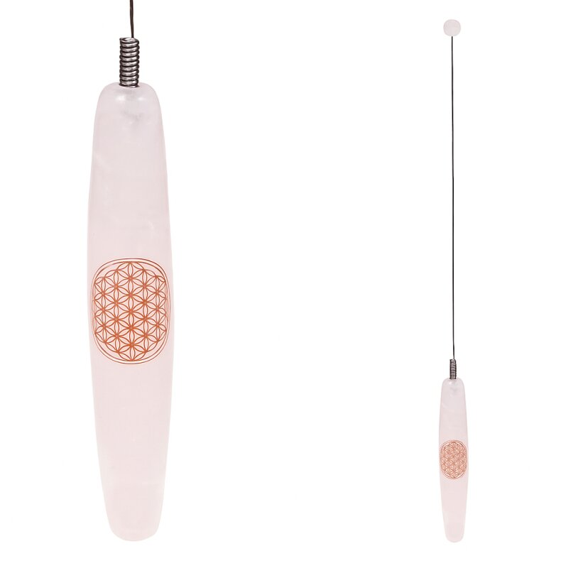 Diese Einhandrute hat einen Griff und eine Kugel aus Rosenquarz.