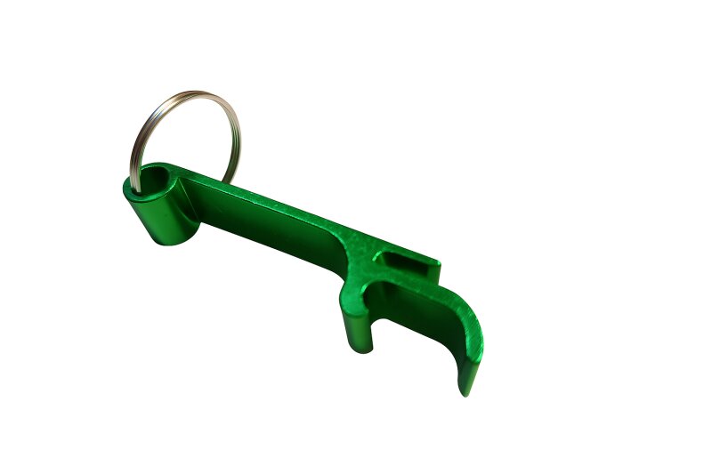 Dieser stabile Flaschenöffner aus eloxiertem Aluminium ist ein funktionales Alltagsaccessoire in einem frischen, zu Pendelparadies.de passendem Grün.