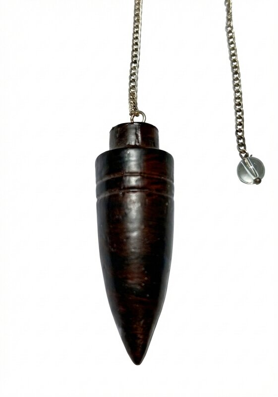 Dieses handgedrechselte Pendel aus Rosenholz vereint organische Wärme mit präziser Formgebung.
