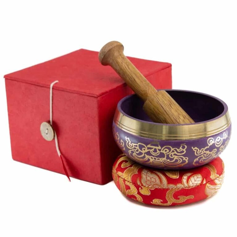Tibetisches Klangschalen-Geschenkset – lila 10 cm