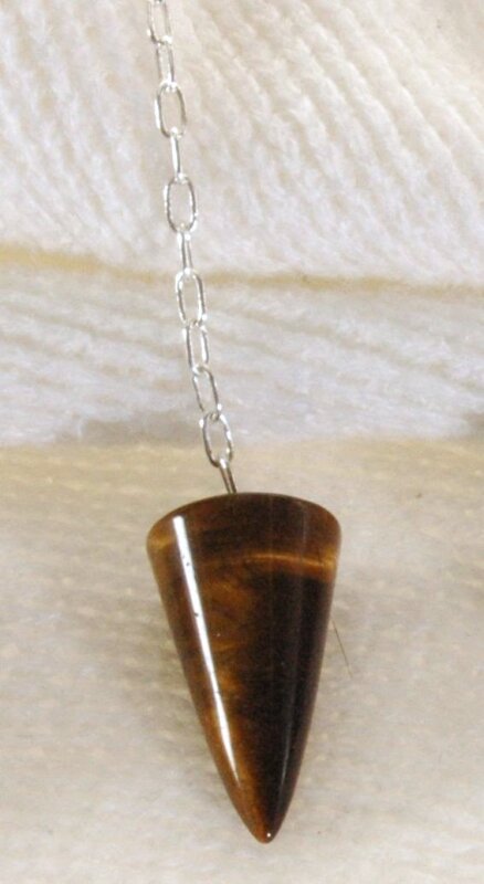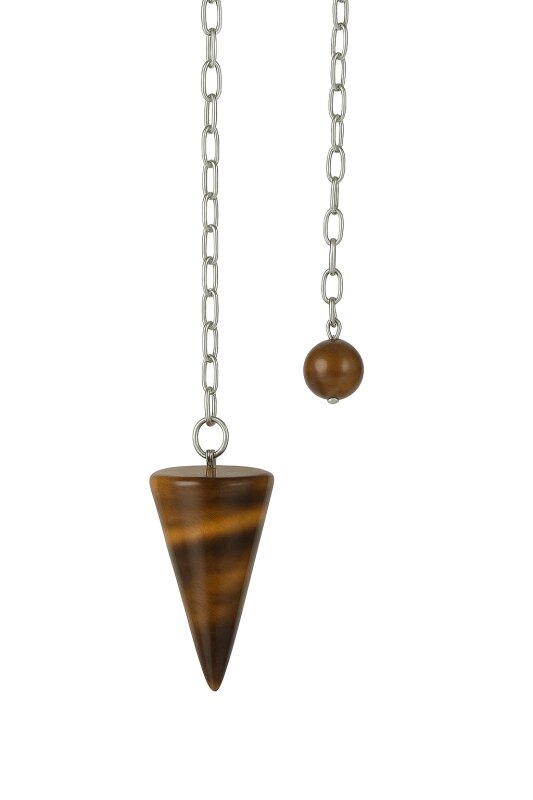 Dieses fein gearbeitete Kegelpendel aus Tigerauge vereint mystische Ausstrahlung mit funktionaler Eleganz.