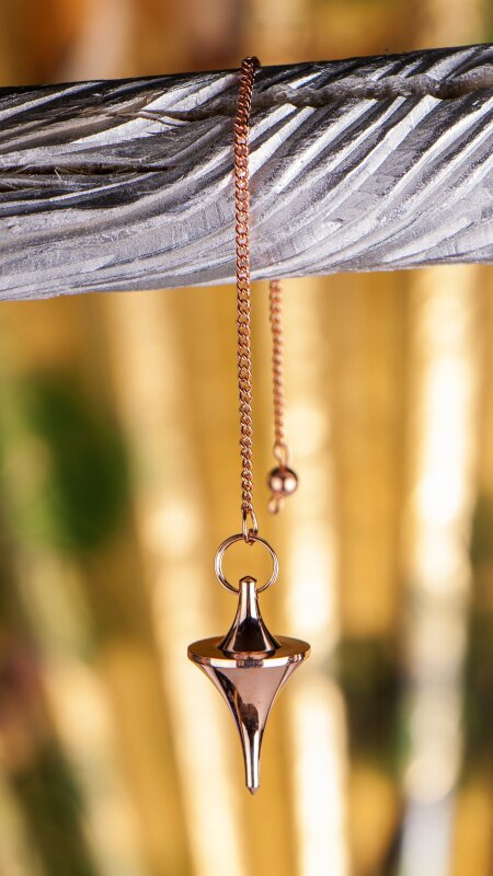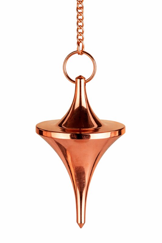 Dieses Pendel aus massivem, verkupfertem Messing zeichnet sich durch seine klare, trichterförmige Gestaltung aus.